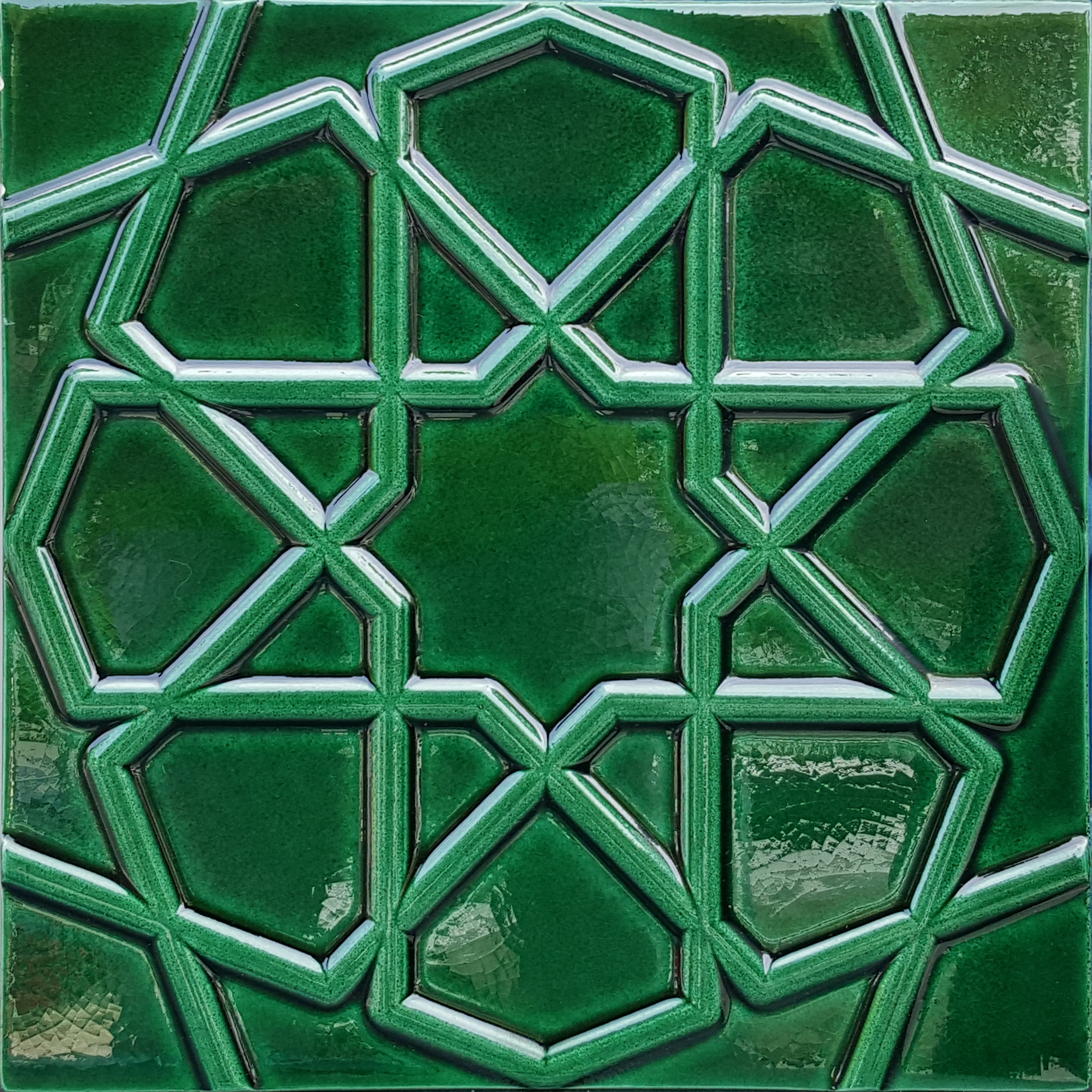 20×20 Zümrüt Yeşil Selçuk Yıldızı Seramik Rölyefli Çini Karo